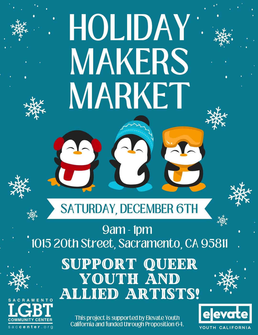 Join us on Saturday, December 6th, from 9am to 1pm as we open our doors for our second annual Holiday Makers Market! Support queer youth artists and allies while crossing those last names off your gift-buying list or fending off holiday stress with some retail therapy. Already at the Midtown Farmers Market? Pop in to warm up, sip some cocoa, and grab some cute finds, too!